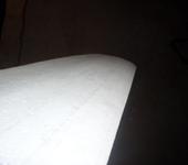Пока сохнет крыло, половину пластины (разрезал по длине, т.к. длина фюзеляжа 1м) 20мм пенопласта оклеил с двух сторон потолочкой и оставил тоже сохнуть, дабы получился такой “бутерброд” размерами примерно 25 на 100см: