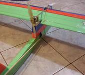 О плохом: я понимаю, когда потолочку используют для постройки интересно выглядящих объемных моделей. Но для, назовем вещи своими именами, страшных плоско-квадратных устройств для битья в ней какой плюс перед ЕРР? Ломкая, работать сложнее, усилений требует бОльших, обклеивать еще желательно… А из ЕРР такое сделать – вырезал, склеил циакрином, усилил карбоном (вот еще, кстати, к вопросу о штапиках, линейках и прочей фанере), и всё, в небо! Скажете, вы не из Москвы, и у вас ЕРР и карбона нет? А, простите, приемники, моторы, аккумуляторы литийполимерные у вас что, в сельпо продаются? Тут уж как раз у жителей провинции преимущество перед мегаполисами, где народ привык в магазин ходить, а заказывать по интернету не хочет, а кому деваться некуда и без инета и заграницы никуда, так тому нет проблемы и ЕРР с карбоном привезти, это все точно так же там продается. Ну это по материалам. А по конструкции у меня вот какое замечание: зачем моторама сделана в виде стула, к спинке которого приделан мотор? Очевидно же, что рано или поздно эту спинку, на которую он давит, он оторвет, от ударов или просто от жизни? Надо было сразу так рассчитать размер, чтобы винт вписывался в пространство, а рама была простой площадкой, опирающейся на “заднюю стенку”, не знаю, как назвать эту часть самолета, ну, кабины. Да, мне кажется, он и так имеет шанс вписаться, в крайности, можно винт взять на дюйм меньше…