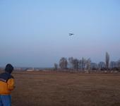 8,9 марта усиленно ставили на самолет (как Вы сказали ДОНчик- Донкихот) электронику в результате-получилась задняя центровка. При максимуме расположения аккумулятора(емкость 1300) спереди, пришлось наложить на нос фанерные накладки и сделать баластную камеру. В принципе и понятно. Хочешь сохранить винт- получи заднюю центровку. Если установить аккумулятор 2200, то наверное получим САХ-30% но его пока нет. Перемотав скотчем все огрехи, выпустили птичку в полет-и она полетела.