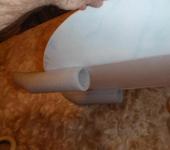 Для придания трубе утеплителя вид поплавка (лыжи) делаю вырез, после чего склеивал края выреза между собой используя термоклей (пистолет), клеит быстро и надежно, им же можно приклеить поплавки к крылу.