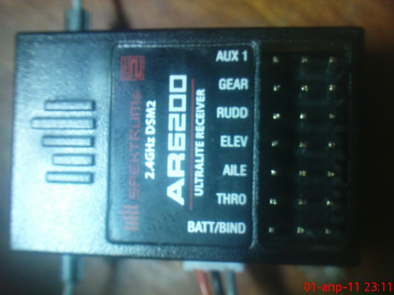 Приемник AR6200, и пульт к нему идет Spektrum DX6i, данный приемник из разряда DSM2, очень хороший и стоит порядком 50$, лично у меня такой стоит на вертолете TAROT 450 PRO, а маленькая квадратная с антенками, это вспомогательный приемник, такая система позволяет принимать и отпровлять командв по двум постоянно меняющимся частотам, очень помехоустойчив, даже если сам зайду в контейнер верт будет четко выполнять команды, сори что в разделе самолетов)))), просто так случайно зашол сюда. не банить.