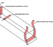 Первым делом что сделал это укрепил все рулевые плоскости и крылья полосками карбона 1х6х750 мм. все изначально было немного кривовато и хлипковато, одно крыло сильно выгнуто вниз, другое от удара о машину после первого краша наоборот вверх.Крылья хорошенько прогрел выложил на стол придавил хорошим грузом и в таком состоянии вклеил снизу полоски карбона на эпоксидку. Также сделал с элеронами и рулем высоты, причем высоту укреплял двумя параллельными полосками. После усиления конструкция стала намного жёстче, крылья перестали играть и приобрели ровную симметричную форму. Все обтянул широким скотчем. Дальше взялся за фюзеляж. Располовинил его вклеил перегородку батарейного отсека, для фиксации батареи использовал удерживающий валик, направляющая из 2,5 мм карбоновой палочки, сам валик кусочек от прикольного материала с железных вешалок. Для фиксации батареи вклеил с низу небольшую фанерную площадку и на саморезы прикрутил к ней двухстороннюю липучку. Лучше покажу на рисунке для наглядности.