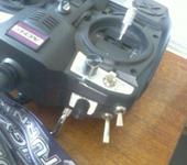 вот еще мелочь, может кому пригодится… гироскопы стоят на элеронах и рв, настроил их на крутилку pit trim (слева вверху) но чтобы не заходить на режим удержания и знать где “0” к крутилке скотчем прикрутил маленький проводок и при нуле на корпусе аппы тоже маленький кусочек провода скотчем. пальцем легко чуствуется во время полета в каком положении крутилка находится и когда хвост начинает прыгать волнами можно немного убавить, как и совсем выключить в полете, выставив на ноль