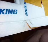 Дома обнаружил, что трубка в крыле, после мокровки, сломалась. Крылья целиком были обклеены скотчем, во втором полёте выгибались дугой, но не сложились (две-три петли сделал).