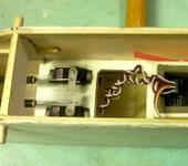 Вся аппаратура установлена на горизонтальной панели фюзеляжа. Для приемника сделан контейнер, оклееный изнутри губчатой резиной (фото 1). Отсек для аккумулятора снизу панели, его длина от второго шпангоута до четвертого. Отсек просторный, что позволяет регулировать центровку перемещением аккумулятора. После определения центровки фиксируем аккумулятор брусками мягкого пенопласта.