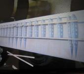 Переднюю кромку крыла сделал так: (извеняюсь, это почемуто не сфоткал) на край крыла наклеил полоску потолочки 3х10мм сверху такую же деревянную рейку и по верх деревянной еще раз потолочку. Когда прошкурил и получился лобик, он был очень крепкий, как и хотелось, надежности.