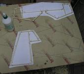 Что касается крашеустойчивости, то у меня основным силовым элементом конструкции фюзеляжа является горизонтальная платформа из коропласта (сотовый полипропилен) 3 мм с вырезами где нужно. Она упирается в моторный шпангоут и доходит до задней кромки крыла. Далее ее срединная часть вырезана и оставлены как-бы две длинные ножки-рейки. Они сводятся вместе к хвосту. Такая же пластина, поставленная на ребро, является центральным силовым лонжероном крыла. Удельный вес пластины из коропласта вдвое меньше дерева и при ударе она не ломается.