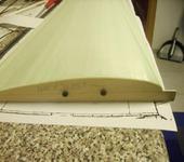 Процесс был такой : вырезал заготовки , довёл торцы . Прорезал паз под лонжерон (линейка 50см) глубиной 10мм .Нервюры та же линейка, в корневой сверлится отверстие под карбоновую трубку и вклеивается ушко для крепления крыла к фюзеляжу . Клеим нервюры к торцам и вклеиваем лонжерон . Потом сводим профиль по нервюрам шкуркой приклеенной на длинный ровный брусок (средневековье ? согласен !) Канал под карбон пробивал дюралевой трубкой с зубцами на торце , потихоньку проворачивая и следя чтобы не увело . Карбон заходит в крыло на 200мм , на расстоянии 180мм вклеен усилитель (прямоугольник 50х20, фанера 3мм) с отверстием под трубку . Карбон диаметром 10мм.
