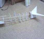 1-ое что я сделал - собрал фюзеляж, лонжероны из сосны, шпангоуты из депрона, далее начал зашивать хвост депроном, пока на этом все, но есть вопросы как сделать крыло - наборное или из депрона полностью или пенное.
