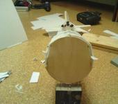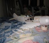 Я решил, что буду делать болван из утеплителя твердого, потом его шкурить, потом, наверное, обклеивать бумагой, а потом на нем сажать бутулку, потом вклеивать в нее несущий каркас. Все это будет после следующих выходных (приедет утеплитель с дачи). а с с крылом тоже проводились некоторые работы: заклеены все нервюры и заклеен толстый задний лонжерон. Пока все;)