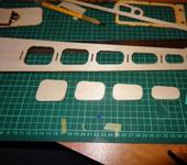 Стрингерами служат реечки сечением с 3х4, которые проходят через пазы шпангоутов и вдоль боковин. Результат примерки - пазы меньше рейки, устраним путем разметки и пропила пазов в рейках поскольку, увеличив паз в шпангоуте рискую получить кривую конструкцию. Пазы в боковинах фюзеляжа вроде соответствуют, чуток можно удлинить в верх, даже если перестараться, ничего страшного не будет, позже объясню, почему.