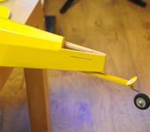 АКБ очень большой и мощный, да и двигатель даст тяговооруженность больше 1, можно че нибуть по проще с тягой около 500-600 грамм, колеса основных опор. В планере уже ничего не поменять. При существующем весе нагрузка получается около 40 г/дм, вроде ничего, просто увеличение веса приведет к увеличению скорости…