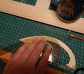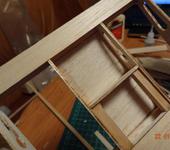 Стрингерами служат реечки сечением с 3х4, которые проходят через пазы шпангоутов и вдоль боковин. Результат примерки - пазы меньше рейки
