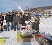 Уффф. Продолжим. Для проведения показательных полетов захотелось сделать систему сброса груза. Недолго думая к верхней части фюзеляжа перед крылом была вертикально приклеена серва. Груз помещается снизу фюзеляжа, обхватывается резинкой которая зацепляется за качалку сервы. Для сброса качалка поворачивается освобождая резинку и груз. Система успешно прошла испытания, и на показательных полетах на радость зрителям сбрасывали сникерсы на парашютах.
