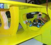 Прорезал элероны на верхнем крыле (задняя кромка крыла была собрана на двустророннем скотче, петли не понадобились), подключил по девятиграмовой серве на каждый элерон. Сервы подключил параллельно и повесил их на первый канал. РН перевесил на четвертый. Элероны небольшие, размером с руль высоты. Сервы прилепил на двусторонний скотч на нижнюю поверхность крыла.