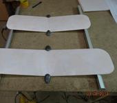 Кстати, для придания формы крыльям, сделал, на скорую руку, такую приспособу из фанеры невысокого качества и обрезков сотового поликарбоната. Вдруг, кому-то пригодится: