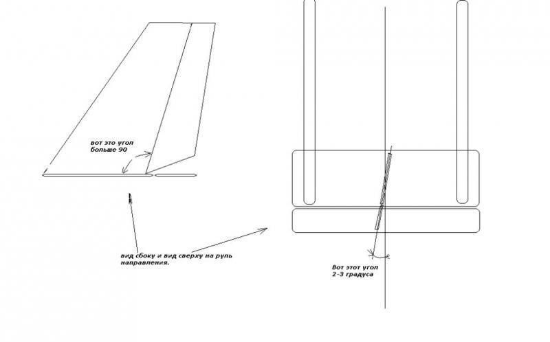 Про угол постановки можно увидеть в этой же ветке вот здесь rcopen.com/files/51a7000f9970730077bc2304 , имеется ввиду когда смотришь сверху на стабилизатор, то рудер стоит не по прямой, а под небольшим углом.