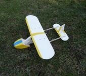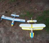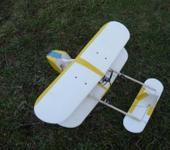 Biplane “Micky”. Полета пока не получилось. Так, попрыгали… Из-за сильнозадней центровки пришлось нарастить нос, заменить хвостовые балки на рейки (после посадки на хвост при первом планировании) и добавить груз. Бип вышел с весом в 600 г. А проп остался только 3-х лопастной 5". С ним тяги не хватает. Но планирует ровненько. Так что, летать должен. Сделал винт 7 х 5 с тягой до 400 г. И опять включили ветер. Надо ждать. Собрал клипы с субботних тренировок.