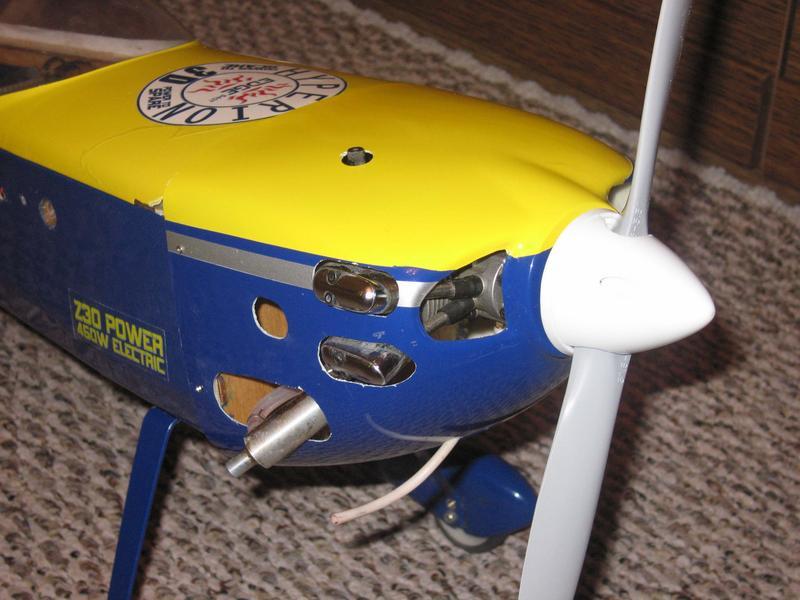 Вы че ребята? На калилку 46 класса такие сервы ставить. Стандартные как минимум по 3,5 кг. Это вам не пенолет. Выходные отверстия в капоте должны быть в три раза больше впускных. Обычно снизу капота хайло вырезается. Моторчики греются сильно и от перегрева имеют свойство глохнуть. Цилиндр двигателя обязательно должен обдуваться набегающим потоком. Заделывать отверстия в шпангоуте смысла нет, но и хуже не будет. По поводу скобы. Должна быть однозначно. И очень желательно это место укрепить дополнительно, допустим металлической или текстолитовой накладочкой. Заложенная производителем в этом узле прочность зачастую недостаточна. Поверьте опыту. Я две модели так потерял. И еще законтрите все петли штырьками. Зубочистками, гвоздиками, чем угодно. Очень имеют склонность вылетать в полете, с явно нехорошими последствиями. Расходы зажмите для начала, до 70% от минимальных. Экспоненту тоже 70%. Модель очень верткая. Ну и удачи в полетах.