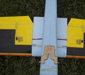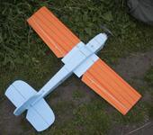 Мой пенопиложный самолет восстановлен после аварии. Было жесткая встреча с землей. Мотораму вырвало и оторвало правую консоль. На фюзеляже остались только следы. Все остальное цело. Консоли урезал. Дабы сохранить размах, в фюз вклеил вставку из пеноплекса. Вырезал струной соответствующий профиль. К вставке приделал консоли. Размах увеличил с 0,96м до 1,02м. Винт 9x5 поменял на 10x5. Тяга маленько увеличилась, немногим больше единицы стало. Полетный вес без шасси увеличился с 750гр до 800 гр. Тяжеловат для пены с таким размахом. Ну что ж, чуть быстрее будем летать.