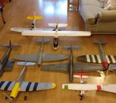 Вот на лавочке что на фото справа, сегодня испытал морковку, мустанг по центру - тот самый, на котором слегка треснул хвост. Спитфайр справа - списан. Спитфайр слева отправился к новому владельцу, мессер после осмотра перед вылетом - разобран. Крыло списано, фюзеляж оставлен. Дальний мустанг из пены - тот самый, на котором учился летать, летает и сейчас. На фото без мотора.