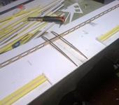 По выкройкам получилась ширина крыла 165. Я поставил лонжерон 45 мм. от передней кромки.