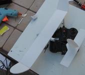 Предложение: выкиньте куда по-дальше свое крыло. оно никуда не полетит. делайте что-о вроде flitetest.com/articles/FT_Flyer_Scratch_build flitetest.com/articles/FT_Old_Fogey . первый я сам делал. очень летучий аппарат. ВНИМАНИЕ!!! не делайте все как на четртеже, а конкретно вам понадобится только плоскость крыла, и хвостового оперения. V образность крыла советую сделать по-больше. фюзеляж делайте чисто для удобства броска (1 слой потолочки.) размах до 50 см а еще лучше если вы снимете 1 мотор и поставите редуктор и лопасти от вертолетика. тогда ваще полетит. (я так понял что моторы с вертолета) как осуществляется управление ? разность оборотов моторов? тогдаможно вернуть моторы в вертолетные редуктора и освободить их от ненужных частей(снять вертолет с редукторов или с вертолета редуктора) таким образом получится управление моделью по крену за счет разности оборотов моторов (крен будет не сильный). Если вернуть моторы в редуктор, то тяга будет достаточная для полета (друг делал FT Flyer с такой мотоустановкой на одном моторе). я надеюсь что вы что-то поняли.