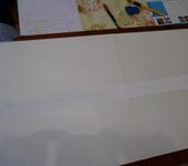 И приступил. Два листа потолочки обрамляем по краям, примерно сантиметр и отрезаем заготовку 420мм. Вторую также. Склеиваем. Размечаем центр с изнанки, на лицевой стороне приклеиваем по будущему месту сгиба скотч. На изнанке ручкой или тупым предметом продавливаем линию сгиба. Прокатываем на трубе крыло чтобы придать профиль. Клеим проставки под лонжерон и сам лонжерон (10 мм рейка или линейки). Собираем крыло на ровной поверхности чтоб не повело.
