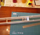 Определился с компоновкой, пришлось отломать одну реечку над крылом. Сначала планировал аккумулятор размещать над крылом, но центровка не позволила. Надо аккум потолще купить что ли…