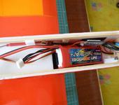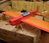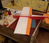 Самолёт в деревне. Но габариты соответствуют чертежам. Батарейка на фото во втором посте. 1900 3S 30C (это самая жирная пока из моих запасов). Скорости пока хватает, потом попробую разные винты.