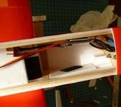 Определился с компоновкой, пришлось отломать одну реечку над крылом. Сначала планировал аккумулятор размещать над крылом, но центровка не позволила. Надо аккум потолще купить что ли…
