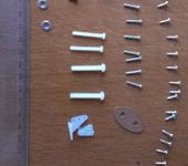5 пластиковые винты для крыльев, небольшие саморезы со шляпками для серв, как я понял в комплекте есть зажимы для тяг. Их желательно ставить на кабанчики.