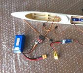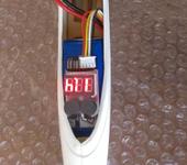 Затем передвигаем аккумулятор в нос модели и пристраиваем к нему вольтметр: