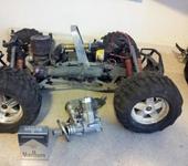 Современные калильные двигатели работают на специальной смеси, нитрометаном зовется. Продается в модельных магазинах.
