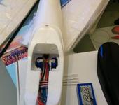 Именно так. И по поводу центровки. 2200 (весом в районе 180 г) её обеспечивают. Более лёгкие батареи = проблема. А ещё у меня был случай… Выпала батарея из отсека, и вывалилась наружу, но осталась висеть на проводах. Винт её слегка покоцал, сам умер. После этого я приклеил к фюзеляжу планку на тряпичной петле с одной стороны и липучкой с другой. Планка не даёт батарее вывалиться. Пену резать так, чтобы с небольшим натягом батарея входила (я совсем немного подрезал, что-то около 1 мм). Летать может и довольно быстро, и медленно (относительно) планировать. Из “пилотажа” может лететь в инверте и петли (прямые и, если высоты хватает, то обратные). Всё. Бочки кривые. Я своего в ветер гоняю - пока ещё весело. И по винтам. Австралиец порекомендовал 5х5 заменить на 6х4. Типа, для тяги. Но вертикально вверх он всё равно не прёт. По токам (статика и в полёте отличия меньше 10%) максимумы для 5х5 в районе 16А, для 6х4 - чуть больше 19А. В смешанном режиме (то на полном газу вверх забирается, то планирует с подгазовками) за 5 минут выжирает 500 мАч с 5х5 (это на тему “как долго”).