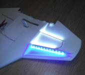 Ну не знаю… мою отлично видно. Крыло полое… четырех-миллиметровую обшивку та-же светодиодная лента пробивает на ура. Кроме того обшивка хорошо рассеивает свет по всему крылу. А если светодиодная лента снаружи, то она горит слишком ярко и точками. Видно только часть крыла… или только светодиодные точки.
