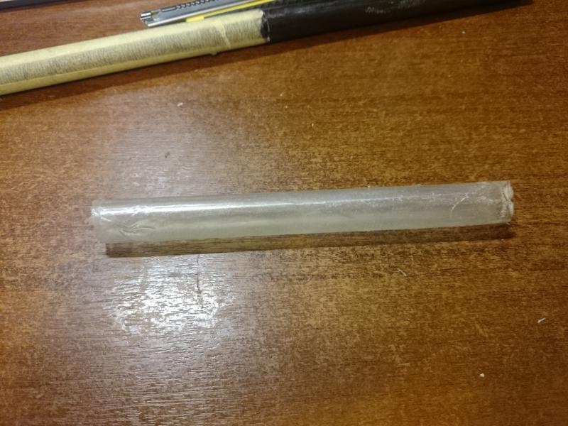 Ну и по прежнему собираюсь духом, чтобы начать делать пенал под карбоновую трубку. Она диаметром 16 мм, а у меня стеклоткань шириной 10 см. То есть как раз хватает на 2 слоя…