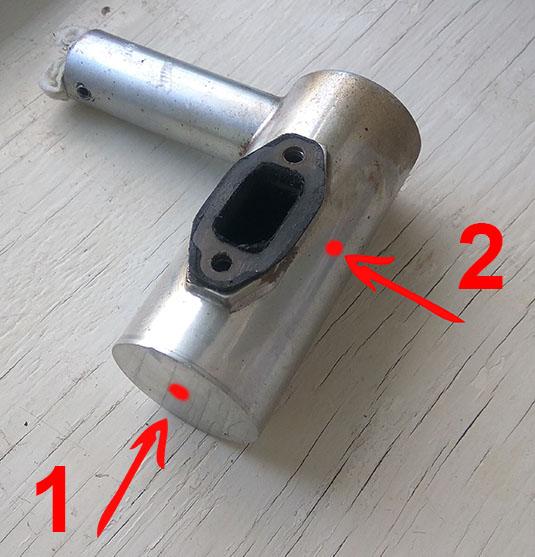 Всем привет, народ сразу не пинайте - я с ДВС! Полчасика пошарил по поиску, не нашел нормальной темы с бензинками. Может поможете, имею 33 куба и глушак как на фото. Вопрос в том куда врезать штуцер для подачи жижы в глушак и что конкретно он должен из себя представлять, просто трубка или же жижу надо распылять как из форсунки?