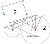 нарисовал я другую схему. зеленые линии-тяга. длина ее одинаковая во всех трех случаях с точностью до миллиметра.