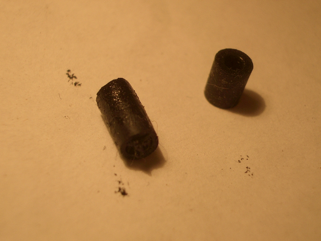 Даже кусочек изоляции с провода соответствующего диаметра, вроде на глаз круглый, оказывается весьма кривым, и ролик, который к нему прижимается “танцует”.