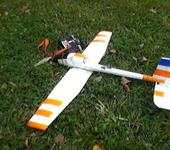 Короче по первым полетам корова еше та, странно 1400мм размах, а с сетапом от Смарта(1500мм, Лео 35й, 780кв, 4S) еле ползал по небу, Смарт винтит только так, что по горизонтали, что в вертикаль уходит ракетой. Короче просится моторчик помощнее. Толстый профиль, лоб,наверное это, хотя вес получился достаточно небольшой( ну для меня) 1655 гр с акком 4S 3300. С 13Х6 винтом держался только на газу, 14Х8 уже что то было похожее на полет, но мотора еле хватало и с ним, расходы везде пришлось довести до 120, иначе не рулился совсем. В общем надо мотор менять и думаю полетит Пескарь этот(надеюсь), ибо в небе смотрится очень даже прикольно. Будем с Бориным Ишаком ретро бои устраивать.