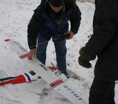 Передняя стойка зарывается в рыхлый снег при увеличении оборотов двигателя - наверное сказывается выкос. А с такой тяговооружённостью, думаю, можно взлетать с рук.