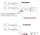 изменения оборотов моторов и по классической схеме рулём направления. Разницы большой не заметил для себя лично, при управлении моторами модель реагирует немного резче . Использовал на всех моделях двигатели и винты от дронов не больших коптеров, в этом случае уже клнструкционно в них заложено направление вращения на валах (резьба) и конечно на винтаж тоже ,регули тоже два по 12 А.