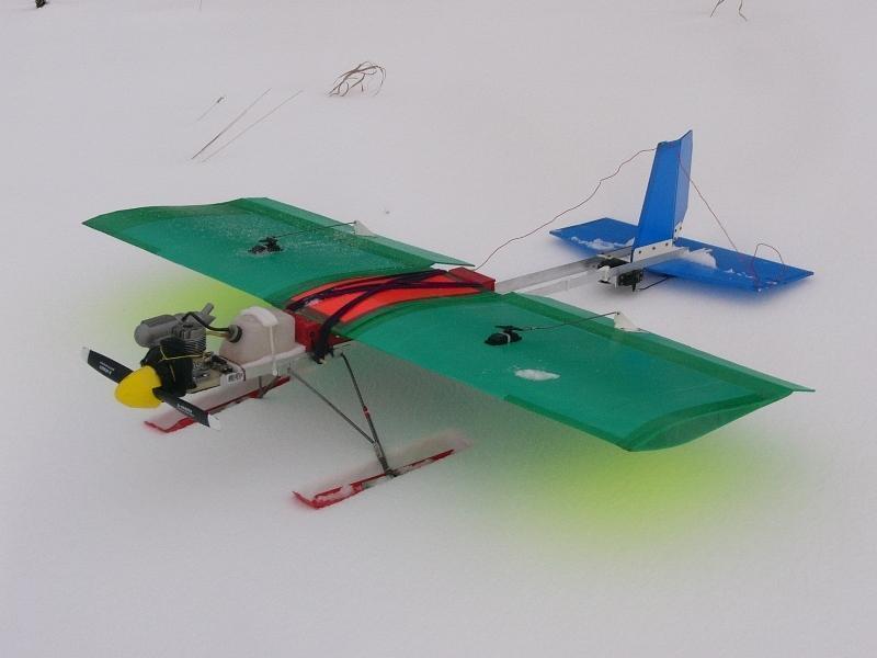 Вся конструкция авиамодели, а именно: фюзелях, крыло и хвосты выполнена из гофропластика, обладающего огромной прочностью. Плюс ко всему добавочную прочность модели придает цельный деревянный лонжерон во всю длину крыла. Кроме прочности, второй особенностью материала является способность возвращать свою форму после удара.