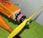 Я тоже пытаюсь прикрутить безколлекторник, но он, к сожалению, noname и я не знаю его постоянную в об/в, что сильно затрудняет подбор винта.😃 По мотокальковским прикидкам и оценке макс оборотов “по телевизору” лучше подойдёт 8*6 винт, если без редуктора делать. Но тяга всё равно не выше 300г считается. По ощущениям на руках - похоже на правду.