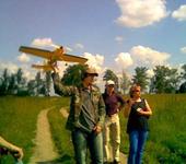 Поле выбрали не чуть не доезжая до Пушкина. Почти нет деревьев, очень высокая трава. Взлет с земли исключен - грунтовая колейка. Вспоминаю как описывался взет с рук. Нервничаю. Прошу знакомого выполнить все инструкци, включая двигатель. Бросок… Самолет проседает. А дальше… А дальше у моего сознания случается шок, а управление на себя берет мозжечек. Осуществляю набор высоты. Сознание судорожно отмечает, что чертов самолет обладает неслабой скоростью и вот вот улетит в Финляндию. Спешно пытаюсь договориться с мозжечком чтобы завернуть беглеца. Заворчаиваем против часовой. Делаем “коробочку”. 3 пролета. Завод на посаку. Сбрасываю газ, завожу к нам лицом, снижаюсь. На высоте 2 метра отключаю мотор, мягко падаю в траву. Опп. Одним куском. Руки трясутся. Делаю 5 минутный перерыв. Пока вголове нет мыслей закрепляем успех. Опять бросок (но уже против ветра). Взлет. Проходы. Завожу над нами с запасом высоты, делаю мертвую петлю. Самолет идеально слушается. Ощущается огромный запас тяги и маневра. Делаю петлю, но уже более плавно. Все ахают. Завод -посадка. Цел. Третий запуск. Знаю, что как раз 3-4 запуски самый опасные. Тем не менее движемся. Взлет, обход, петля, обход. Делаю бочку. Неудачно -слишком далеко, не могу понять в каком положении закончился маневр. Руль высоты на себя. Ё-мое!!! Вверх ногами. Самолет прямым ходом устремляется к земле. Дожимаю на себя. Над самой землей видно как самолет проседает от резкого маневра угрожая срывом. Уменьшаю угол, даю газ, опять на себя. Взлетаем. Зрители облегченно выдыхают. Посадка. Я нахозусь в неком разочаровании. Я себя убедил что все закончится крашем, а все получилось идеально, с фигурами. Но душа рвется. Она настроилась на зрелищную авиакатастрофу а ее все нет. Почти со стопроцентым чувством фатализма даю отмашку на 4-ый раз. Взлетаю, начинаю проход против часовой. Выравниваюсь и иду справа налево на расстоянии метров 150. И тут… Странное такое чувство, что из дела тебя выкинули. Самолет вдруг обмяк. Пошло снижение. Слабая реакция на рули. Нежно пытаюсь вывести на себя в траву, но понимаю что это бесполезно. Слежу за плавным полетом. Хрясь и самолет ударяется в крону невысокого дерева, падет в траву. Обнаруживаю его на спине, в конвульсиях подергивающего рулями. Все цело, на крыле пару вмятин. Пока несу, сервомашинки сходят с ума. Полеты закончены.