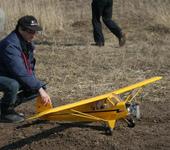 Элероны ставте градусов 30 сразу, ленивый он по элеронам, а на посадке при боковых порывах ветра нужна довольно энергичная компенсация. Для первого полета -РВ 10-12 градусов РН-15градусов. После взлета и привыкания 2-3 минуты, сразу тренируйте заход на посадку.Полезно так же поставить подкал свечи, моторчик у Вас 2т. Кстати, если моделька под 3 кг винтик ставте 12Х4 Грауптнер. Эти винты живут в Термике. Еще бывает 12,5Х4. Возьмите оба. Под винт придется на вал ставить втулку, либо аккуратно намотать тоненьким скотчем для плотной посадки.
