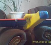 Для ее установки на самике был сделан бокс из линеек, потолочки и поролона. Бокс крепиться к контейнеру на резинках. Фишка этого бокса, что камеру можно ставить и на одну сторону и снимать прямо вниз, и на другую, где под дыркой для объектива установлено зеркало, и получается вид вперед ( к сожалению получается зеркально-перевернутый вид по горизонтали ). Вот такой АВАКС получился: