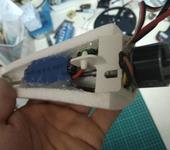У кого то в теме были проблемы с вытаскиванием вала из цанги. Мне тоже пришлось вытащить, т.к. если его полностью на всю длину вставить в цангу, то на крепление винта остаётся маловато. Вышел из положения каплей дебондера и нагревом, вал вышел спокойно. Мотор поставил на штатное место, регулятор упрятал в тоннель, так больше места под канопой. Батарейка будет 4х баночная 1300 мАч мотор пропдрайв2826 1350кв.