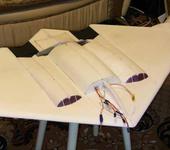 Тоже вот, пока погода нелетная, решил сделать что-то типа В-2. Из потолочки, практически плосколет, высота профиля совсем небольшая… Но суть не в этом. Немного изменил схему крыла. Толкающий винт сзади.